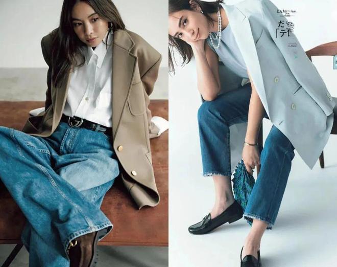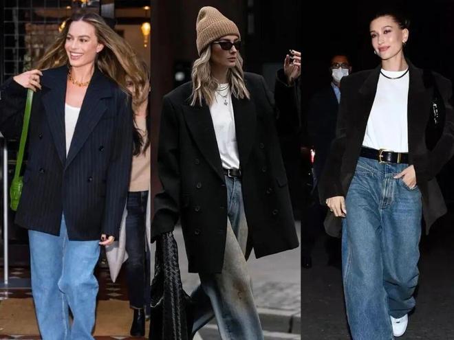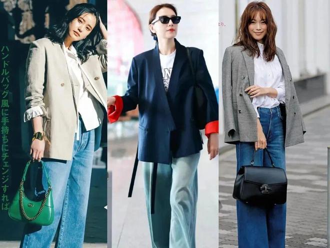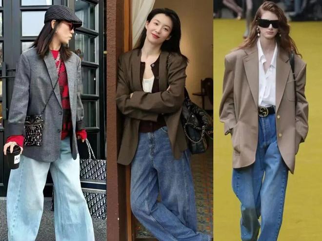 西装想要在生活中穿的话,就要稍微构思一下了,可以借助牛仔阔腿的休闲慵懒属性来削弱这种感觉,来塑造出不同的风格与格调。