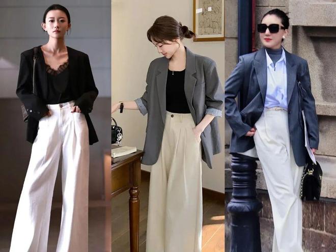 白色阔腿裤搭配西装外套堪称职场时尚经典的穿搭,百变风格切换自如,轻松hold住不同职场场合,还突出整个人清爽利落的品位。