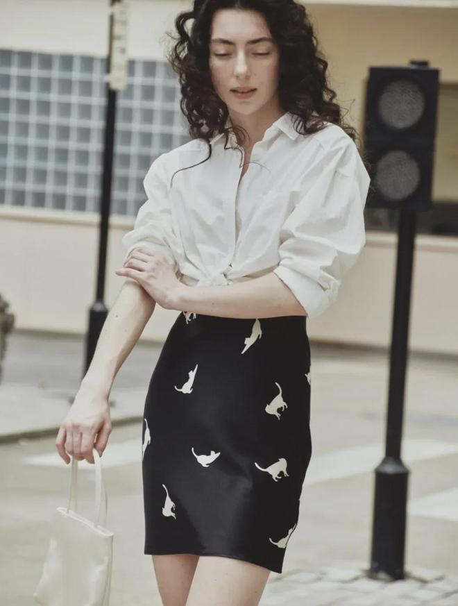 白色衬衫,搭配黑色印花半裙,既有温度又不失气场,都能穿出精致的温柔感治愈又舒服,能穿出不费力的时髦感下角塞腰里,更将浓浓的风情尽情释放,穿出洒脱又自信大女人的个性,尽显出无拘无束的气场
