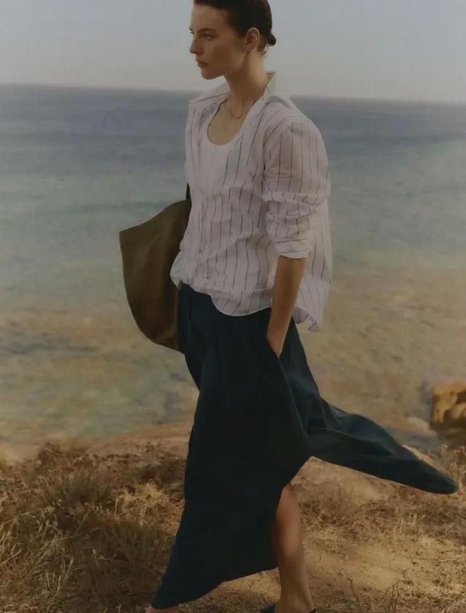 白色条纹衬衫,穿出秋日独有的舒服与高级简单却不普通,舒服又显格调,内搭白色打底再搭配黑色半裙,带着与生俱来的飒爽气场,同时藏着恰到好处的温婉,塑造出不同样的穿衣风情,反衬出女性独立的自信美让你帅气有型的毫不费力