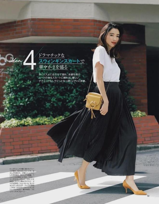 白色T恤搭配黑色百褶半裙,不经意间就能把松弛感里的随性,基本上人人都可驾驭能轻松穿出你想要的时髦感,将T恤下摆塞进腰里,既能明确腰线又悄悄藏着不刻意的酷劲儿,更是让穿搭更随性飒美,轻松穿出洒脱感,搭配一双咖色高跟鞋后,透出简约却高级的质感,瞬间变得大气而高级轻松穿出休闲时髦感!